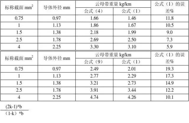 (3)云母帶的總重量W(kg/km)的計(jì)算: