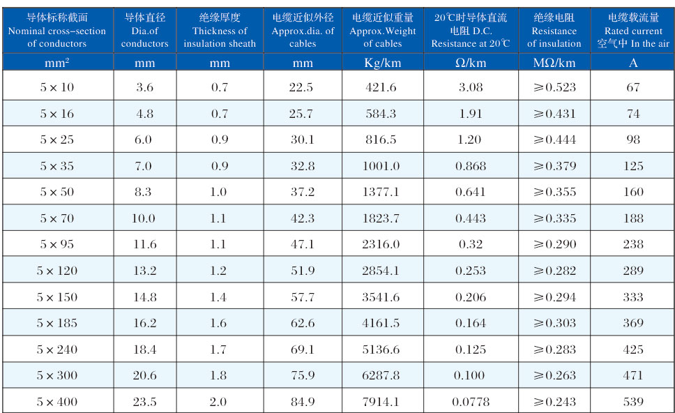 YJLHV8(AC90)  0.6/1kV  五芯交聯(lián)聚乙烯絕緣鋁合金帶連鎖鎧裝聚氯乙烯護套鋁合金電力電纜