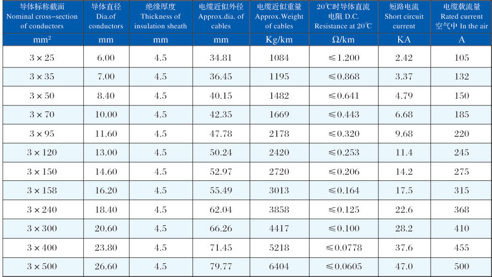 YJLHV8   (AC90) 8.7/10kV、8.7/15kV 三芯交聯(lián)聚乙烯絕緣鋁合金帶連鎖鎧裝鋁合金電力電纜