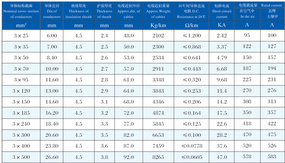 YJLHV(TC90) 8.7/10kV、8.7/15kV   三芯交聯(lián)聚乙烯絕緣聚氯乙烯護(hù)套鋁合金電力電纜