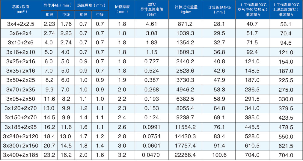 型號(hào):BBTRZ     規(guī)格:3x4+2x2.5-3x400+2x185mm2     額定電壓:0.6/1KV